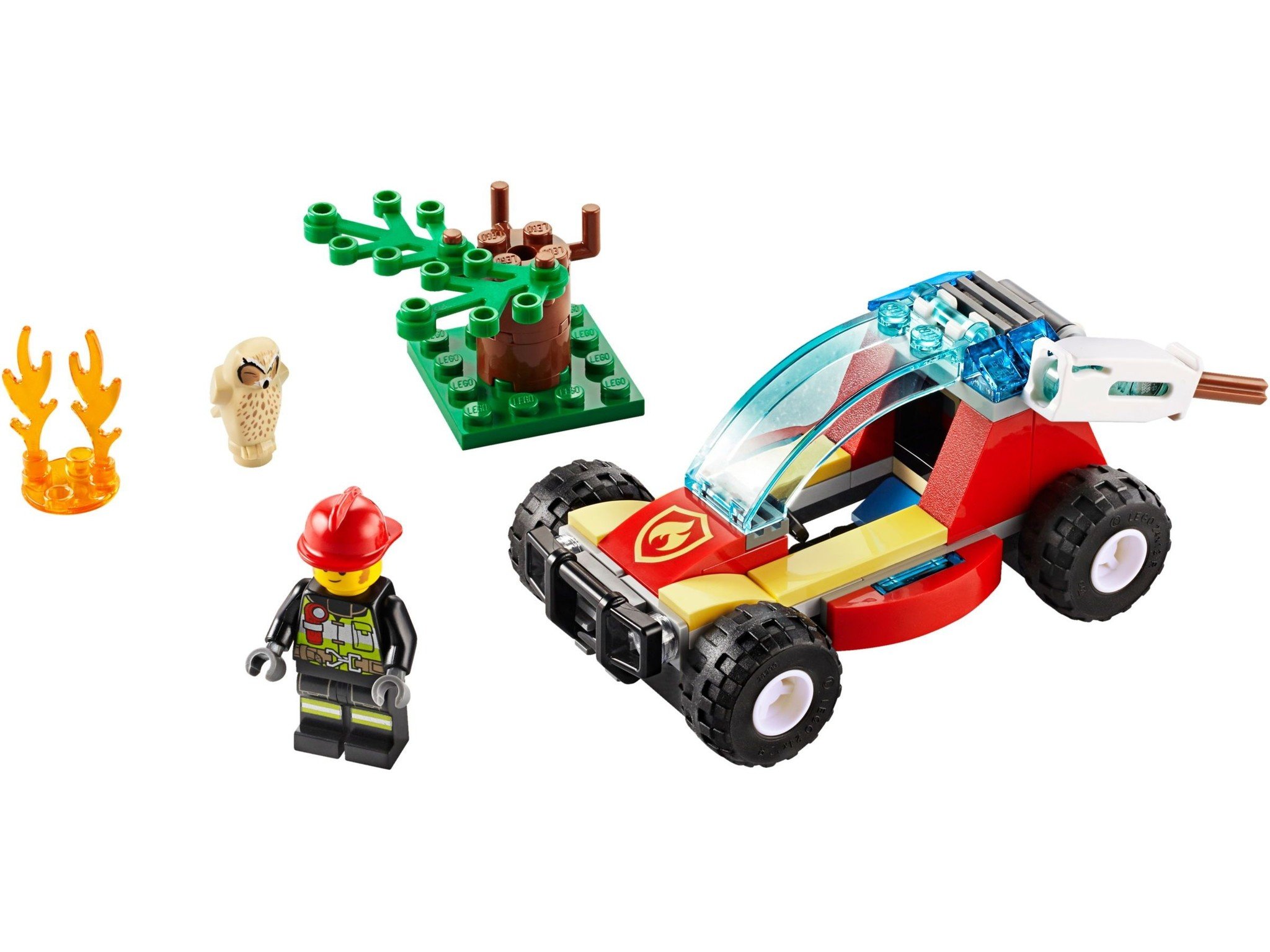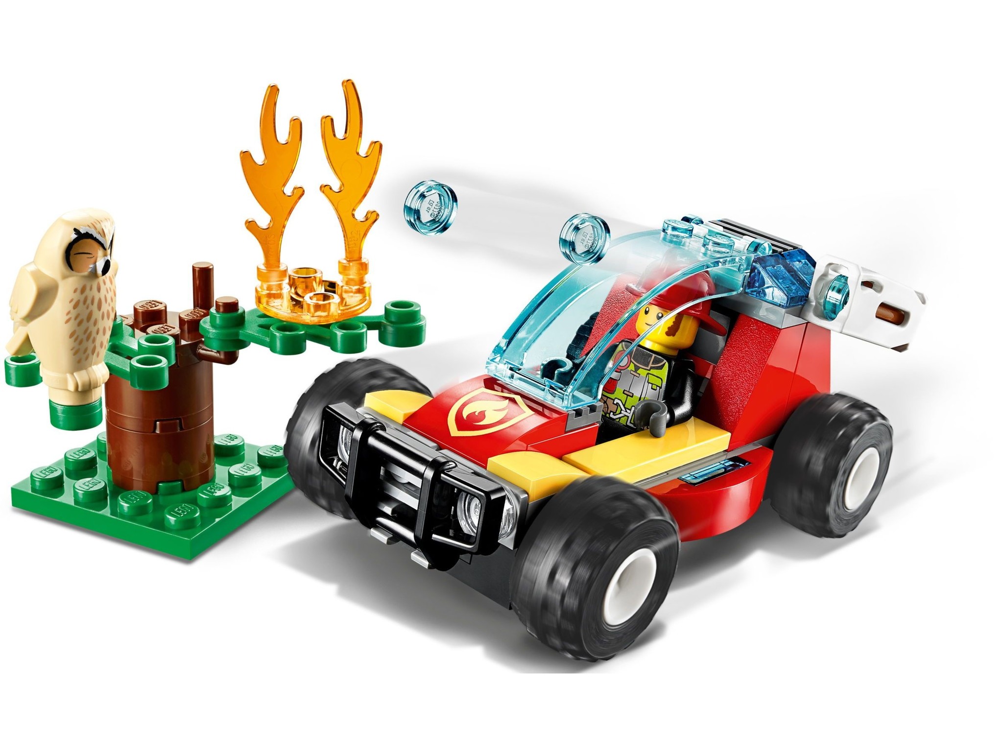 Wat zit er in de doos? Deze (60247) speelset bevat een coole buggy met een waterkanon en ruimte voor de brandweerchauffeur, een speelgoedboom met vlammen en een figuur van een slaperige uil. Biedt volop mogelijkheden voor fantasierijk spel.