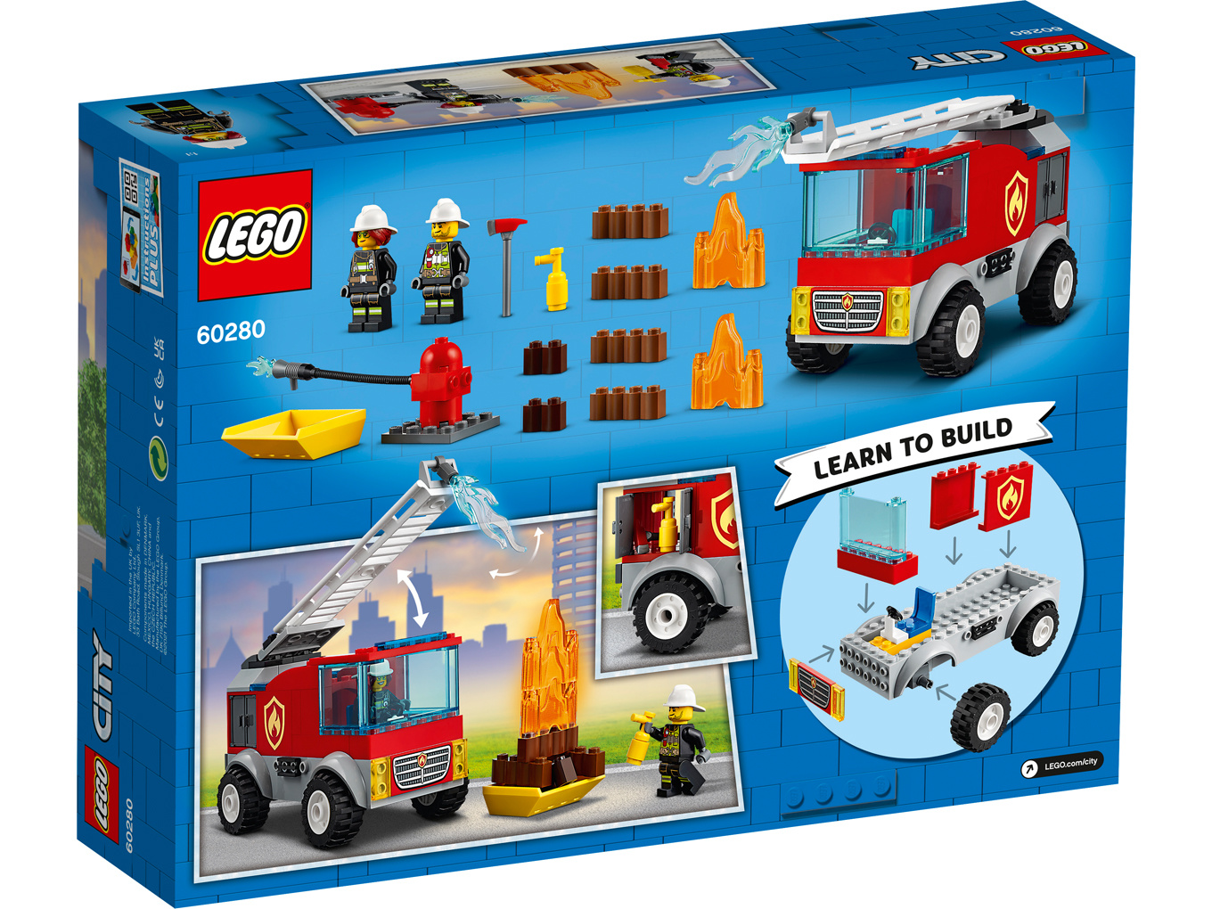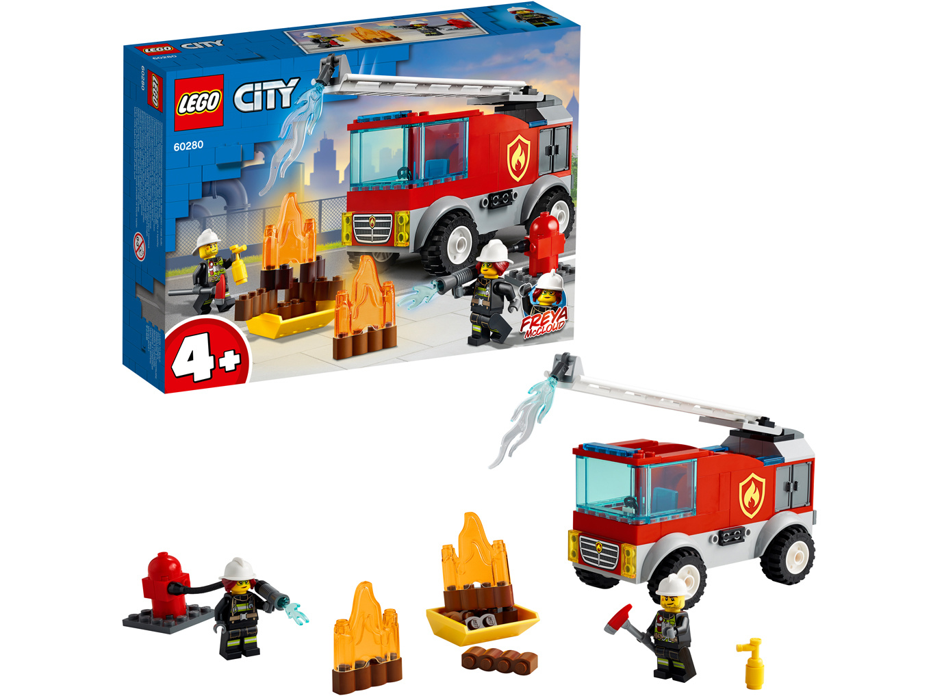 Een verrassing voor kinderen die van actiespeelgoed houden. Deze LEGO® City Ladderwagen (60280) speelset bevat een rode brandweerwagen met een ladder die omhoog kan, plus een brandkraan en stapelbare LEGO vlammen voor een grote brand! Haal de meegeleverde minifiguren van de brandweerman en het personage Freya McCloud uit de LEGO City tv-serie erbij en je bent helemaal klaar voor eindeloze actie uit de tv-serie LEGO City Adventures!