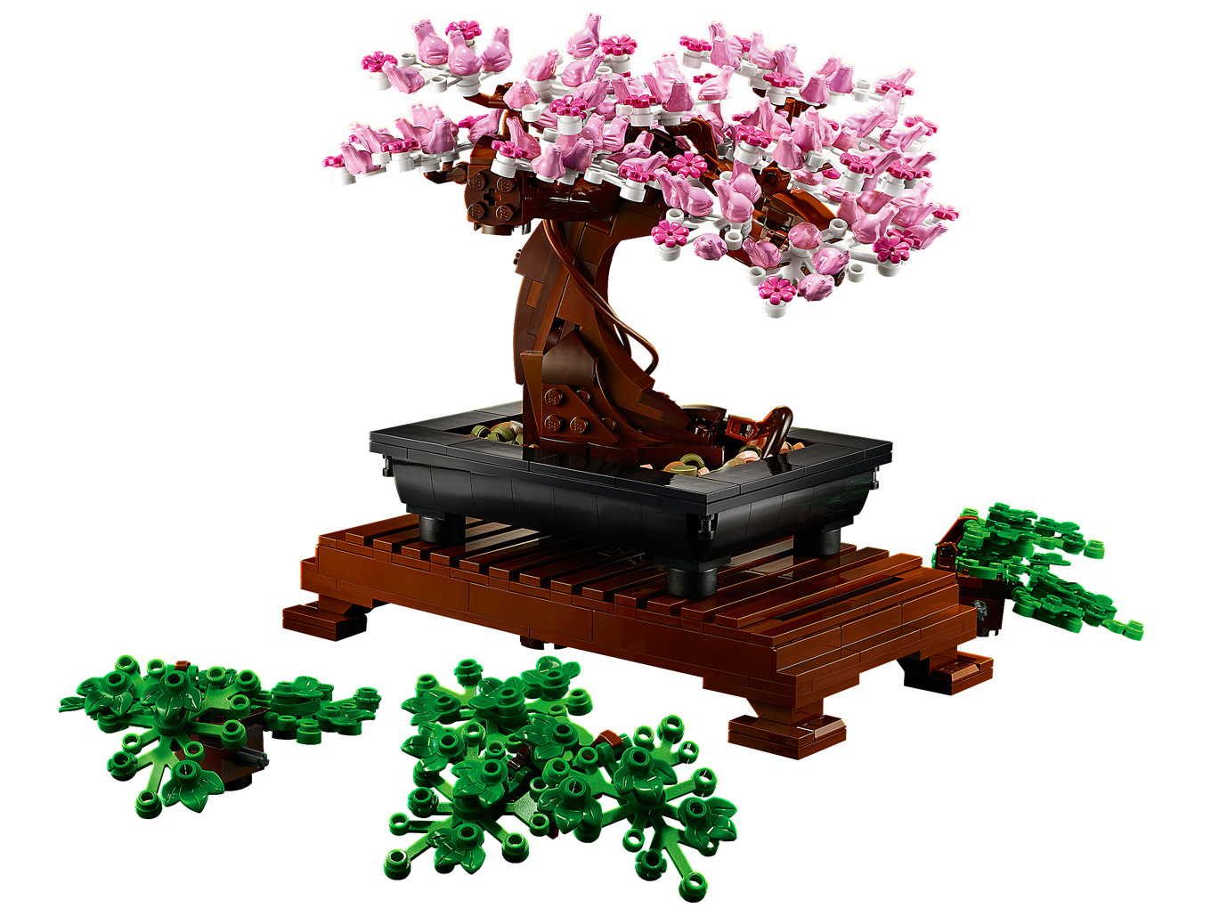 De kunstvorm bonsai weet de fantasie van bomenliefhebbers al eeuwenlang te prikkelen. Nu kan ook jij je aan deze traditionele kunstvorm wagen met deze bouwset van een LEGO® Bonsaiboompje. Ervaar rust terwijl je het bonsaiboompje zorgvuldig in model brengt met de groene bladeren of de roze kersenbloesem. Als je toe bent aan iets anders, kun je de gekleurde kroon eenvoudig verwisselen voor een totaal andere look. En bekijk de roze bloesem eens van dichtbij – zie je de kleine kikkertjes waaruit elke bloem bestaat?