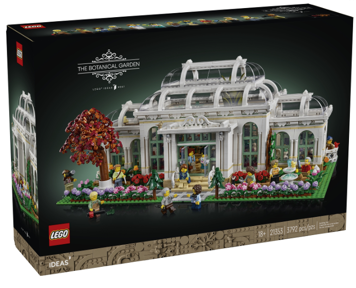Bouw aan je band met de natuur en creëer een rustgevend displaymodel met deze LEGO® Ideas De botanische tuin set (21353). Deze bouwbare kas in Victoriaanse stijl is een prachtig cadeau voor iedereen met groene vingers en bestaat uit 3 atriums met afneembare daken en wanden voor eenvoudige toegang tot het gedetailleerde interieur. Het hoofdatrium heeft een wenteltrap naar het observatiedek, terwijl de 2 kleinere atriums een woestijntuin en een café herbergen. Buiten het gebouw vind je tuinen met kleurrijke pioenrozen. In totaal bevat de botanische tuin meer dan 35 plantensoorten.