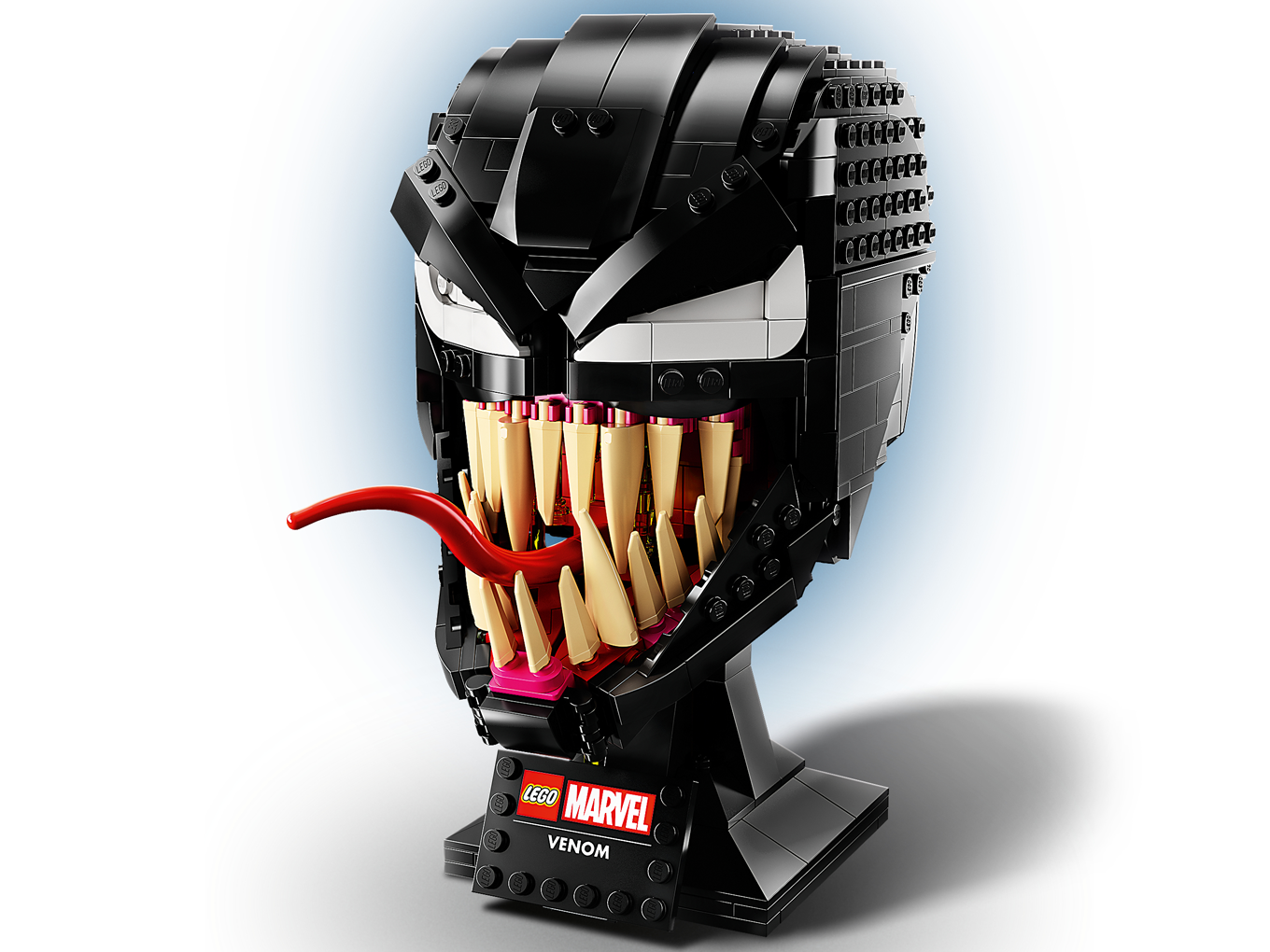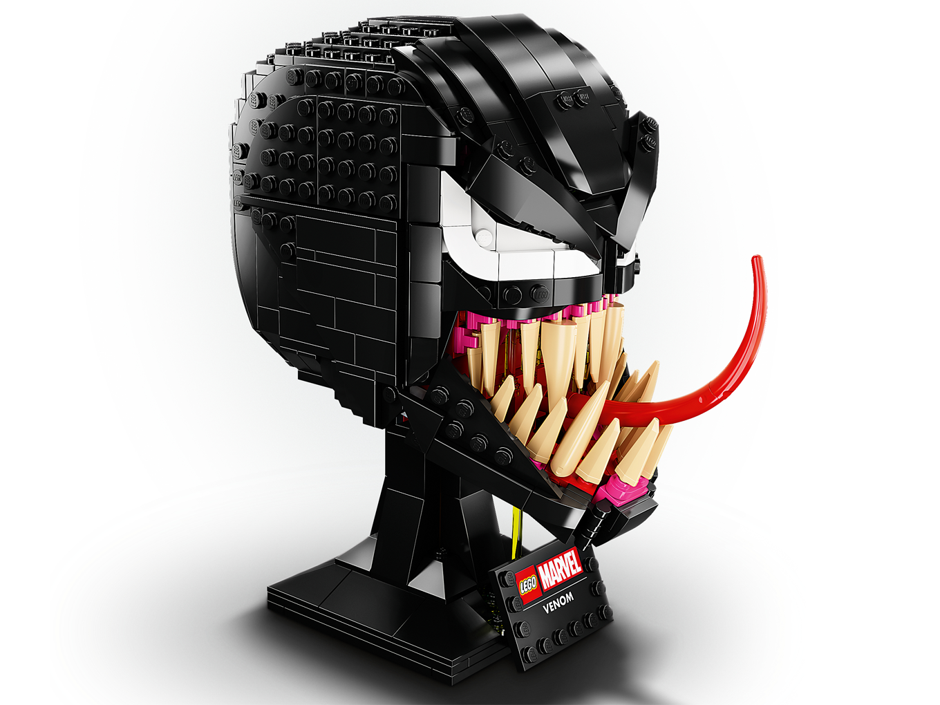 Fans van Venom en de Spider-Man films staat een boeiende bouwervaring te wachten wanneer ze de authentieke gelaatstrekken van de gruwelijke buitenaardse symbioot namaken. De grote kaak met vlijmscherpe tanden, de lange kronkelende tong en het lage zwarte voorhoofd vormen samen een onmisbare blikvanger. Dit model ziet er met zijn stijlvolle naamplaatje aan de stevige basis nog indrukwekkender uit naast andere op comics gebaseerde LEGO modellen.