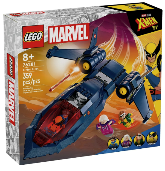 Deze spectaculaire bouwset van een modelvliegtuig is gebaseerd op de X-Jet uit X-Men '97, en zal eindeloze avonturen in de lucht inspireren met de minifiguren van Cyclops, Rogue, Magneto en Wolverine. Het actiespeelgoed beschikt over een dubbele cockpit met ruimte voor 4 minifiguren, 2 noppenschieters aan beide kanten en 2 schieters met veermechanisme onder de vleugels. Er zijn ook 2 afneembare opbergdozen waarin kinderen reservenoppen en Wolverine's lange klauwen kunnen opbergen als deze niet aan de minifiguur zijn bevestigd. Voor nog meer plezier kunnen bouwers inzoomen, modellen draaien in 3D en hun voortgang bijhouden met behulp van de leuke, intuïtieve LEGO Builder app.